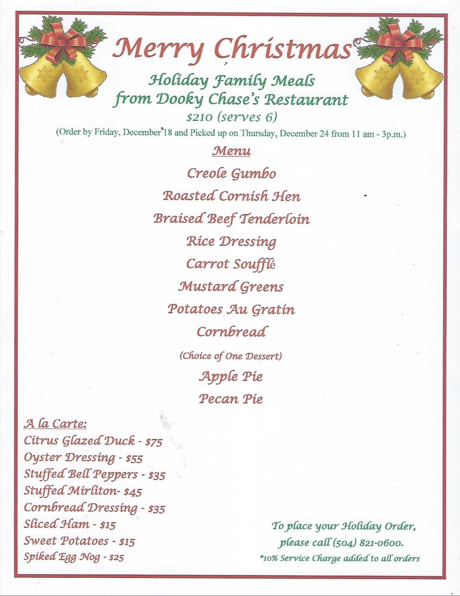 Dooky Chase Restaurant On Twitter Christmas Family Meals Are Available To Pre Order Last Day To Get Your Orders In Will Be Friday December 18th Call Us At 504 821 0600 Or Email Us With
